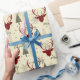 A Beige, Red And Green Patterned Christmas Wrapping Paper With Green Trees And Red Stag Deer Heads