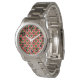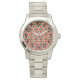 This women's watch has a geometric design of repeating red and deep red triangles with green circles on top on a field of off-white. Want the same design in different colours? Message me.
