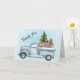 Thank you greeting card with a festive Christmas design. A watercolor truck carrying Christmas pine trees along with some woodland animals. A bear a fox and a deer standing in the back going for a ride.