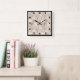 A clock with a cute Nordic style pattern. Winter pine trees, bears, reindeer and squirrels. Light brown color.