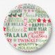Christmas Typography Red & Green Seamless Pattern Paper Plate