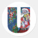 CHRISTMAS U LETTER / SANTA WITH VIOLIN MONOGRAM CLASSIC ROUND STICKER