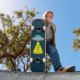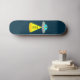 This awesome skateboard features a digital art image of an alien spacecraft decorated with bright coloured Christmas lights. Inside the UFO looking out through the window there is a green alien with black eyes wearing a festive Santa hat. There is a cone of light coming from the flying saucer. The shadow of a message is being projected to Earth. The message says Ho Ho UFO. Holiday greetings from outer space for all Earthlings.