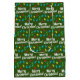 A festive christmas gift bag with Christmas lights and a Merry Christmas writing pattern. The cusive writing is bold and therefore eyecatching.