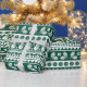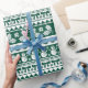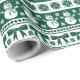 This Christmas wrapping design is a faux knit design inspired by ugly Christmas sweaters, it features holly and berries, snowmen, bows and snowflakes in a colour palette of dark green and white. See the whole matching collection.