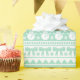 This Christmas wrapping design is a faux knit design inspired by ugly Christmas sweaters, it features holly and berries, snowmen, bows and snowflakes in a colour palette of mint green and white. See the whole matching collection.