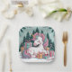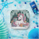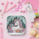 Serve holiday treats with style using party plates featuring a unicorn surrounded by Christmas trees and presents in pink and turquoise tones. Perfect for kids’ parties, festive gatherings, or unicorn-themed celebrations.