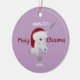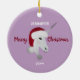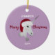 Christmas Unicorn Purple Fantasy Kids Personalised Ceramic Ornament makes an elegant gift idea for a unicorn lover! The beautiful white unicorn is wearing a red Santa hat and the customised name and year. The text holiday greeting is "Merry Christmas" in modern calligraphy script lettering. Background shown is pastel purple and you can change to any colour.