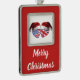 Christmas USA and UK Flag Hearts and Santa Hats Silver Plated Framed Ornament