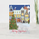 This card was created from an illustration of shops in the city that are decorated for the Christmas season. there is an overlay of a Christmas tree, snow bank and black and white cat. A lovely holiday card that has an inside greeting that you may keep or change to add your own words.
