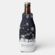 Keep beverages chilled in festive style with this charming Christmas Eve bottle cooler. Featuring a cosy Christmas village nestled among pine trees beneath a sparkling starry night sky, the design captures Santa’s sleigh and flying reindeer gliding overhead through delicate falling snowflakes. The cheerful “Merry Christmas” in modern typography adds a joyful seasonal touch, making it perfect for holiday drinking gifts or Christmas gatherings. Both practical and decorative, this cooler keeps your bottles cold while adding a dash of holiday magic to every pour.
