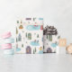 This charming wrapping paper features original hand painted whimsical painting of a winter village, tiny houses, snowflakes, pine trees, and an icy pond with skating people on a ecru background. You can change the background colour and the text saying 'Merry Christmas' Original Artwork by Caroline Bonne Müller