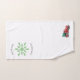 This towel set features a classic red pickup truck with a fresh Christmas tree in the back on a white background and green snowflakes sprinkled around. Text reads "Williams Family" and "Merry Christmas" which may be personalised to your own name and message.