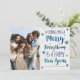 Merry everything christmas customisable name and photo card in blue watercolor pattern and hand lettered style text in dark blue. Add your custom text to this card to create a unique christmas photo greeting this holiday season for friends and family.
