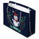 Christmas Watercolor Snowman Custom Navy Blue Large Gift Bag