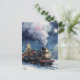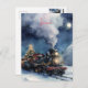 Christmas watercolor train in snowy landscape postcard