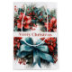 Gift bag with a pretty Christmas wreath. A festive image with a pine wreath decorated with red flowers, holly and a lovely blue bow. Delightful.