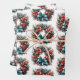 Christmas Watercolor Wreath with Holly Pattern Wrapping Paper Sheet