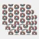 Wrapping paper with a pretty Christmas wreath. A festive image with a pine wreath decorated with red flowers, holly and a lovely blue bow. Delightful.
