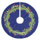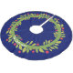 This Christmas tree skirt features an illustration of the holiday wreath on a dark blue background. White script text allows you to personalise with your name.