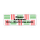These return address labels have a mid-century modern design that looks like a weave with red and green lines on a field of white.