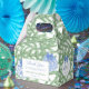 Stylish favour boxes with a watercolor holidays pine tree background, accompanied by handpainted blue and white baubles, the end ones of which are customisable with the initials of the couple.