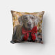 Christmas Weimaraner Dog With Red Bow Cushion