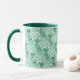 Christmas Mug for coffee or tea. This print has a bohemian print. The colours are , green white. The inside and handle are green. Style: Combo Mug