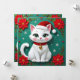A Christmas card that you can personalize with your own message. On the front is a cute white cat with a Santa hat and poinsettias.