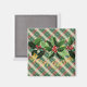 Christmas White Gold Green Plaid with Wreath Magnet.