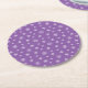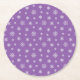 Festive coasters that feature a Modern White snowflakes vector pattern on purple background.