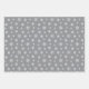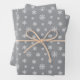 Modern vector pattern of white snowflakes on grey solid background. Festive winter themed design wrapping paper for your holiday gift giving.