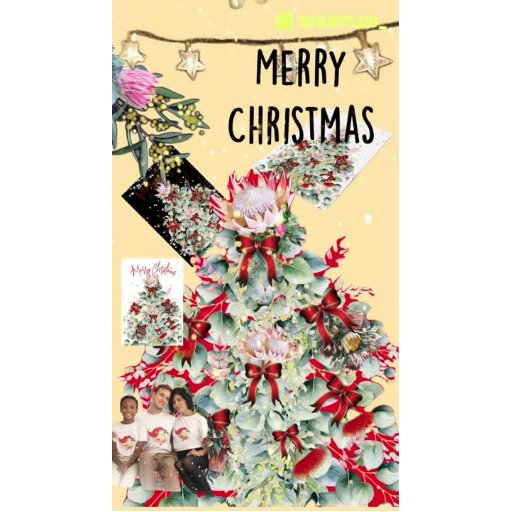 A Christmas tree made from eucalypt branches and decorated with Australian wildflower.