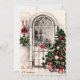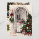 Old-fashioned Christmas card with a scene of a Christmas tree, candlelight, and snowy night on the front. Your custom photos and custom greeting on the back.