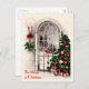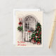 Originally a black and white drawing from the early 1900s, this vintage Christmas window scene with Christmas tree and lights makes a great holiday postcard.