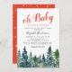 Winter baby shower invitations featuring watercolor christmas trees, snowflakes and a personalised "oh baby, it's cold outside" template.