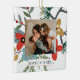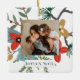 Christmas Winter Flowers Joyeux Noël Holiday Personalized Photo tree ornaments from Ricaso - easy to personalize with your own details - add your own text and photo to this stunning botanical winter foliage green, red and white modern themed ornament with a typography detail to the front and your own photo - perfect for yourself or as a wonderful holiday keepsake for friends and family - ideal to remember your first Christmas together