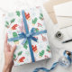Wrapping paper with colourful winter mittens, holly, snowflakes, and berries. Great for winter holidays, birthdays, and Christmas.