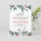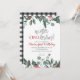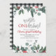 Christmas winter onederland first birthday invitation with holiday greenery and black plaid.