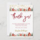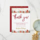 A gorgeous Christmas thank you card. This glamourous gold and red holiday design features a snowy street scene with houses and trees.. Easy to customise with your own winter season thank you details.