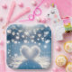 A large glowing heart made of snow sits at the centre surrounded by a cascade of smaller sparkling snow hearts.