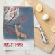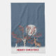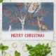 Deer and white rabbit with red berry tree with snowflakes on blue background and full moon.