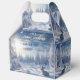 Pretty favor box with for your Winter Wonderland celebration. Cute white Rabbit sits in the snow among the pine trees as stars and snowflakes fill the sky. Personalize for Christmas, Wedding, Bat Mitzvah or Quinceanera. any age birthday.