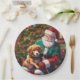 A personalised Christmas plate featuring a dog sitting on santa's lap and telling him what his christmas wishes are.