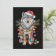 Christmas Wolf Santa Hat Xmas Lights Animal Lovers Holiday Card