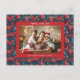 Spread joy and warmth this holiday season with this whimsical family photo Christmas postcard featuring a vibrant red and blue Scandinavian-inspired border of reindeer and other forest animals. The charming folk art pattern adds a playful touch to your family photo, capturing the cosy magic of Christmas traditions.