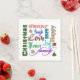 A Digitalbcon Images Design featuring Christmas Word Art in all the colours of the holiday season in this one-of-a-kind "Christmas Word Art" paper napkins. This attractive and festive design comes complete with customisable background colours and tileable image to make this the perfect addition to your Christmas home decor or as a great gift for family and friends alike! Say Merry Christmas this year with this specially designed paper napkins. COMPLETE YOUR MATCHING GIFT IDEAS FROM THE CHRISTMAS WORD ART COLLECTION AVAILABLE FOR PURCHASE THROUGH THIS STORE.