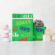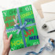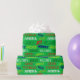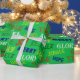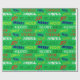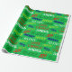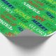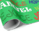 This wrapping paper has a Christmas design of Christmas-related words scattered all over in red, yellow, green, blue, and white.