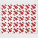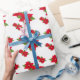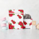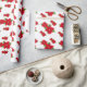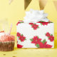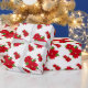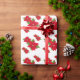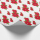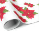 This Christmas wrapping paper is shown with a White background with a festive holiday red poinsettias print.