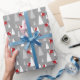 This wrapping paper is shown with a festive Christmas Santa and trees print.